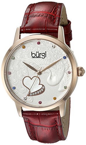 Studio : TWI Watches, LLC Publisher : TWI Watches, LLC Binding : Watch Product Description This beautifully crafted Burgi timepiece is guaranteed to capture your heart with its lovely 36mm case design with rose gold tone finish. Its polished exterior accentuates the elegant black dial that features both a heart studded with Swarovski crystals and a gorgeous peacock design. This beauty is further enhanced by the multi-color crystal markers! Powered by an accurate and reliable Miyota quartz movement and adorned with a red alligator embossed genuine leather strap, this women's timepiece is a testament of fashion and functionality combined. 0