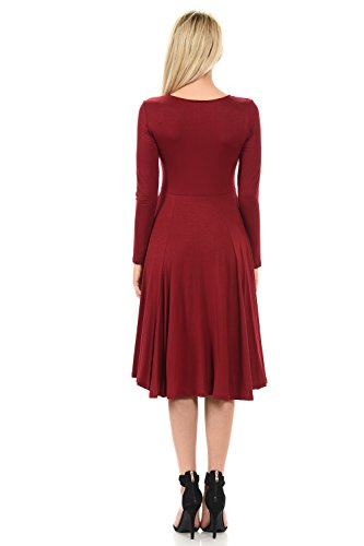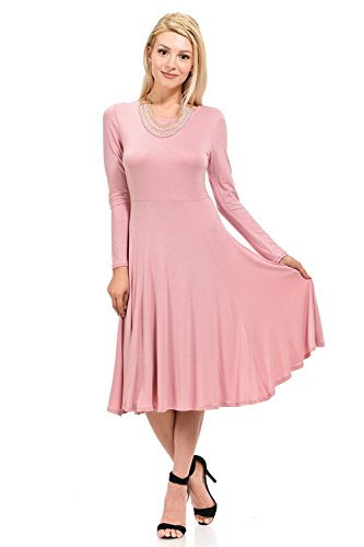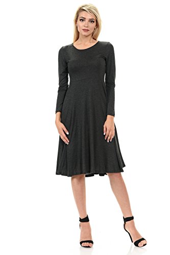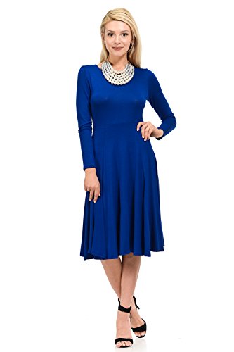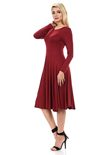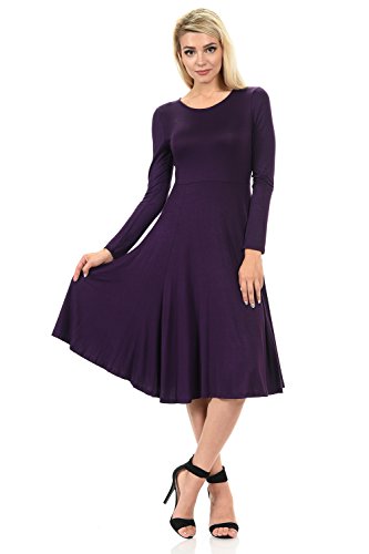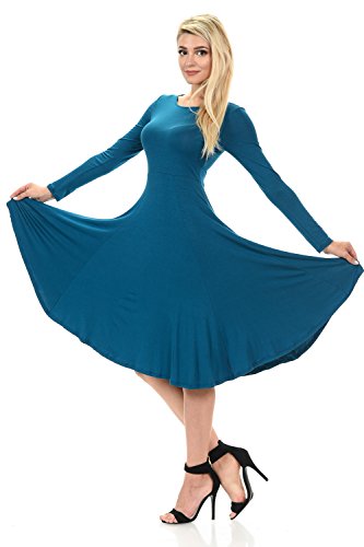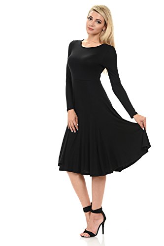 This elegant dress features full skirt, long sleeves, rounded neckline and skater silhouette. It is made of soft jersey knit that has great stretch and drape. Accessories not included.