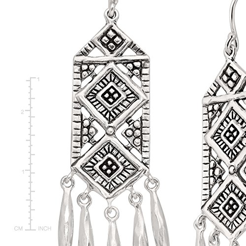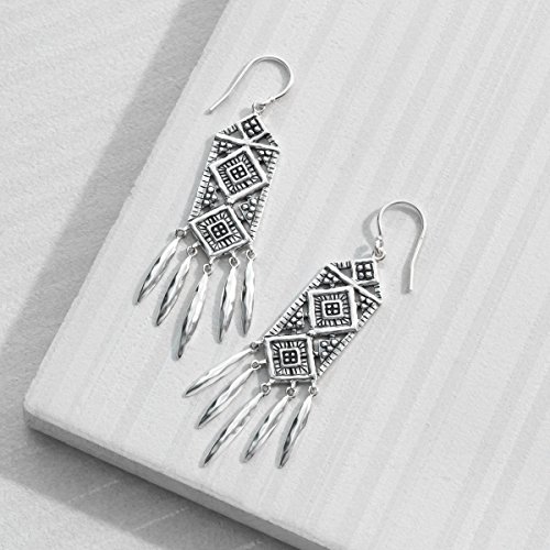 Feel like a 17th-century queen in these stunning drop Earrings. Bold details bring the drama and swinging components bring the movement. Pull your hair back to really show them off. Earrings measure 2 1/4 by 1/2 inches, finished with ear-wire back-findings. Piece comes with a ".925" sterling silver stamp as a symbol of guaranteed product quality.