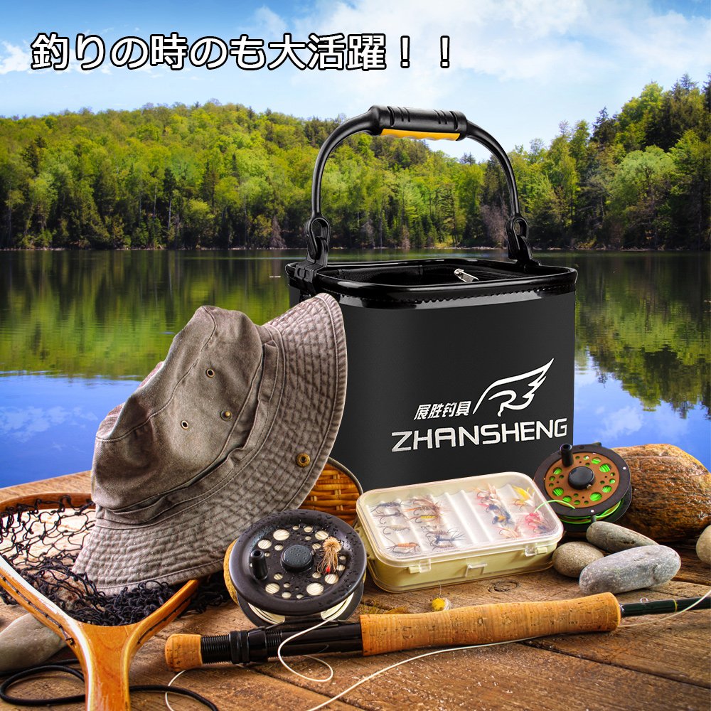 It is a folding bucket of big success also for fishing and playing in the iso, other outdoor and disaster prevention preparation