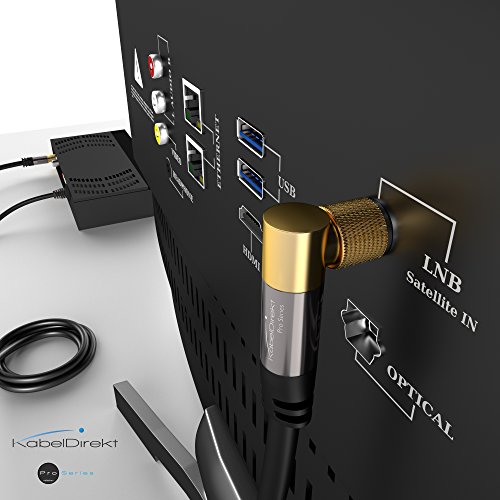 KabelDirekt SAT cable male F-type connector (angled) > male F-type connector (straight) class A KabelDirekt satellite cables are designed for maximum transmission quality. This is achieved through a powerful shielding combination of aluminium Mylar foil and aluminium braiding. The shielding in the actual connector is additionally ensured through a solid metal connection and copper sheet. The result is a true shielding factor > 100 dB. In addition to this excellent property, KabelDirekt satellite cables are equipped with high purity, oxygen free copper conductors and gold plated precision connectors. This results in a signal that is absolutely true to the original. These strong inner values are supplemented by a resistant PVC sheath and high quality connector housings for a long service life of the cable. Area of application: Transmission of analogue, digital and HD signals from the satellite network to TVs and receivers. Transmission of data (Internet) to cable modems and routers. Scope of delivery, warranty and service In addition to the product, you also receive comprehensive support for any type of problem, at any time. All products come with an 18 month warranty. Scope of delivery: 1 KabelDirekt SAT cable with 90° angled male connector, 1 service card 0 |