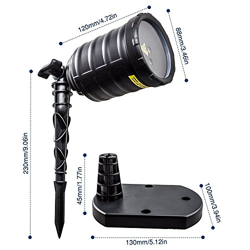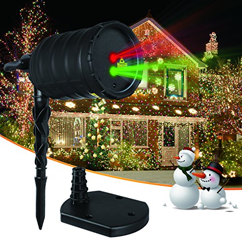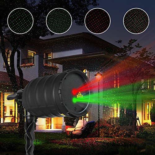 -. Feature : Great designed for indoors and outdoors - Never again go through the trouble of unwrapping and hanging individual strands of Christmas lights. Simply place Christmas Laser Light in the ground outside or on the floor inside and enjoy festive year-round energy-efficient lights that never need replacing. / Moving Red&Green Star Pattern - Perfect for creating a festive atmosphere, this Laser Light projects both red stars and green Christmas trees onto any garden, exterior surface, or interior room. / Broad Application - The Christmas lights can cover up to 2,100 square feet from a distance of 25 feet. It's perfect for Christmas and holiday entertainment, parties, landscape decoration, and anything else you can think of. / Built-in Ambient light sensor and Timer Automatic function- On at dusk or off at dawn, the laser light turns off/on automatically depending on the light intensity. Also with Automatic Timers function, The laser light will turn off after 6H using and turn on again after 18H. / NOTE: Warm up the Christmas light by pling the power adapter into the wall/power socket. The green light may be dim at first but will become more luminous as the laser light warms up. The warm up time needed will vary based on the surrounding temperature. If the temperature is zero (0ºC, 32ºF) or thereabout, warm up time will be about 3 minutes. The needed warm up time will increase to 15-20 minutes as the temperature falls to around -20ºC (-4ºF).