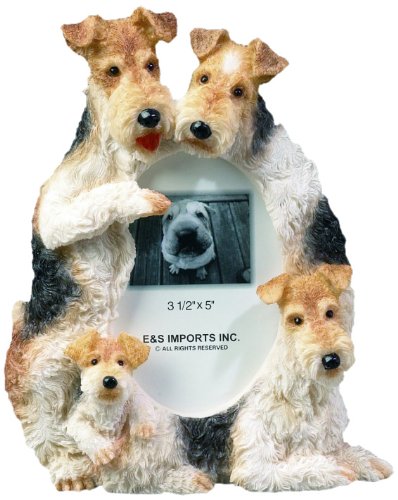 Wire Fox Terrier Gift Picture Frame Holds Your Favorite 3x5 Inch Photo, A Hand Painted Realistic Looking Wire Fox Terrier Family Surrounding Your Photo. This Beautifully Crafted Frame is A Unique Accent to Any Home or Office. The Wire Fox Terrier Picture