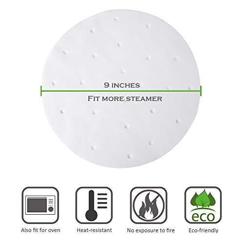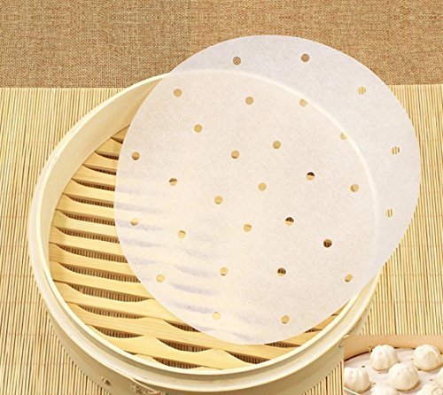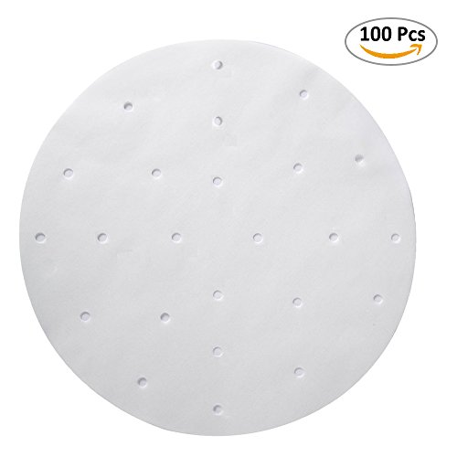 100pcs Air Fryer Liners, BESEGO 9inch Bamboo Steamer Liners, Premium Perforated Parchment Steaming Papers, Non-stick Steamer Mat, Perfect for 5.3 & 5.8 QT Air Fryers/Baking/ Cooking
