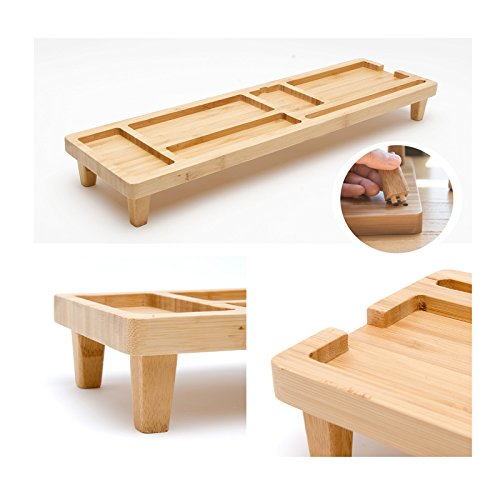 Finished by eco-friendly and sturdy bamboo board, its regular weight capacity is up to 80lbs. Load better than plastic stand, not easy to break like glass ones