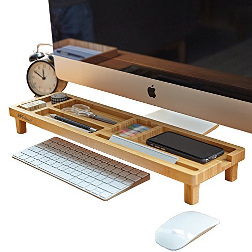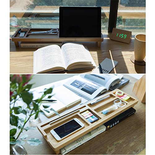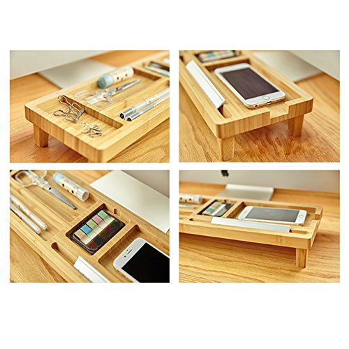 WCloud Desk Organizer Wood Office Supply Book Desktop Small Table Shelf Bamboo