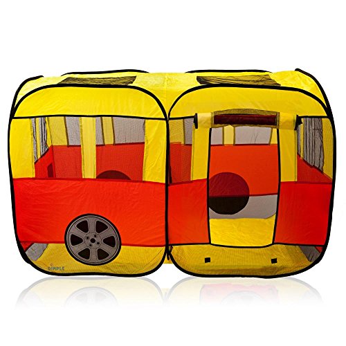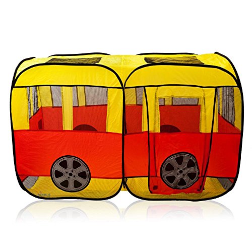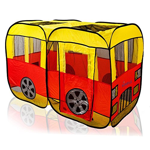 -. Title : Children's Red &Yellow City Bus Design Pop Up Play Tent Playhouse with Mesh Windows for Indoors & Outdoors by Dimple