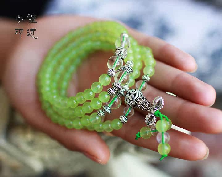 Specifications: Bracelet fold about 42cm (including pendants extended chain), prehnite diameter of about 6mm, crystal diameter of about 8mm, can be worn around the hand 4 laps