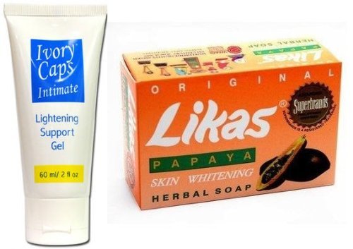 -. Feature : Original Likas Papaya Skin Whitening Herbal Soap + Ivory Caps Intimate Lightening Support Gel was specifically designed for lightening support of intimate and sensitive areas of the body. Suitable for Both Men and Women / * P.R.Ivate Areas * Elbows and Knees * Dark Spot, Lines and Marks Scars or Burns * Underarms and Chest * General Discoloration / Suitable for Both Men and Women, Ivory Caps Intimate Gel may be used on darkened or discolored areas, including: P.R.Ivate Areas Elbows and Knees Dark Spot, Lines and Marks Scars or Burns Underarms and Chest General Discoloration After use, it does not leave any greasy residue on the skin. / Ingredients: Water, Cetearyl Ethylhexanoate, Arctostaphylos Uva Ursi Leaf Extract, Glycerin, Magnesium Ascorbyl Phosphate, Saccharide Isomerate, Carbomer, Glycyrrhiza Glabra (Licorice) Root Extract, Sodium Hydroxide, Polysorbate 20, Potassium Sorbate, Phenoxyethanol, Ethylhexylglycerin.. Directions: For best results, use twice a day (morning and evening). Wash as normal. Allow skin to dry. Apply a small amount directly to the desired area by gently rubbing in a circular motion until completely absorbed into the skin. No gloves or brushes needed. Make sure to cover the desired area. Allow to dry completely before applying any other products. Continued use maintains the look as desired. The Ivory Caps Intimate Formula is comP.R.Ised of 100% pure and natural ingredients that have been clinically developed to be gentle yet effective. In keeping with our company's goal of helping you look and feel your best naturally, Ivory Caps Intimate Lightening Support Gel has a pure herbal formula which may promote natural results for healthier and softer skin unlike cheap drugstore lighteners that contain abrasive chemicals, such as hydroquinone that actually may damage the skin. / Original Likas Papaya Skin Whitening Herbal Soap Made of 100% organic herbs enriched with Natural Papaya Enzyme Complexion becomes fair and acne-free , First filipino pure organic herbal soap Has no strong odor & has no harsh ingredients Whitens your skin and keeps it smooth and young looking, Enriched with Papaya enzyme and blended with tropical herbs to whiten the skin. For clearer and fine skin complexion.It is made of 100% organic herbs enriched with Natural Papaya Enzyme that whitens your skin and keeps it smooth and young looking. Complexion becomes fair and acne-free.Its organic herbal content is so gentle and does not inhibit the natural oil production activity of the skin therefore it keeps young looking and your face free of aging lines.