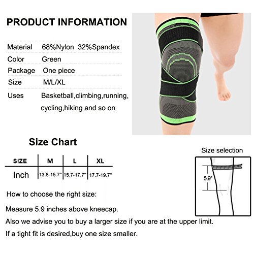 -. Feature : Professional Grade Material: Made of high quality 68% nylon and 32% spandex. Lightweight, breathable and adjustable comfort fit with 4-way elasticated stretch that won't roll, slide or slip down, enhance circulation & oxygenation of the blood thereby increasing muscle performance & accelerate recovery of injured muscles, joints & much more. / Pain Relief & Promotes Muscle/Joint Recovery: Compression is proven to Promote muscle recovery and injury prevention, our knee sleeve relieves muscle stiffness, extra soreness and offers rejuvenating relief from arthritis, osteoporosis, tendonitis, pain & discomfort, allowing you to perform at your peak in all situations. / Adjustable Unique Bidirectional Support: Dual adjustment elastic straps provide customized fit and compression for all day comfort. / Suitable for Any Sports: Our knee brace delivers targeted compression with moderate support for knees.The best knee support sleeve and knee stabilizer for running, athletics, jogging, cycling, weightlifting, squats, soccer, basketball, volleyball, skiing, tennis, golf, walking, hiking, lifting and yoga, just about any sports and exercise activity! / PERFORMANCE GUARANTEED-Designed to protect knees, promote faster recovery, and improve muscular endurance. Our goal is to ensure our knee pain relief products support you on your fitness journey, keeping you on your feet for longer. So, if our knee brace support doesn't fit, just let us know and we'll send you the right size, free of charge. Likewise, if for any reason our product isn't what you're looking for, we'll provide you a full refund, no questions asked!