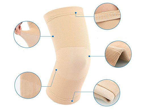 -. Feature : Material:silicone farbic;Color:nude / Size:Length approx 26cm;Suitable leg circumference:36-42cm;Suitable for no more than 70kg adult. / Helps provide relief and compression;Comfort panel reduces bunching behind knee / Comfortable, breathable, soft materials;Assists in proper tracking of the patella / Memory sP.R.Ingback designed , make knee pads rebound quickly , effectively prevent knee pads deformation.