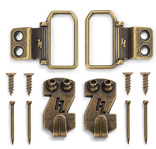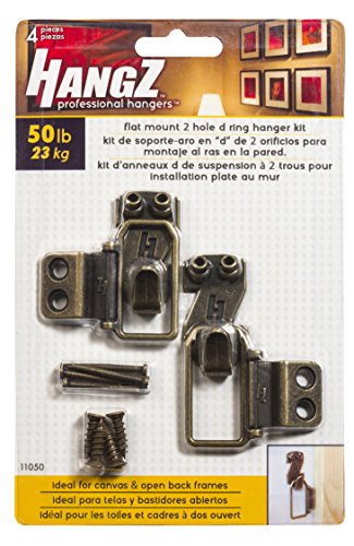 HangZ 11050 Flat Mount 2-Hole D-Ring Picture Hanger Kit, 50lb