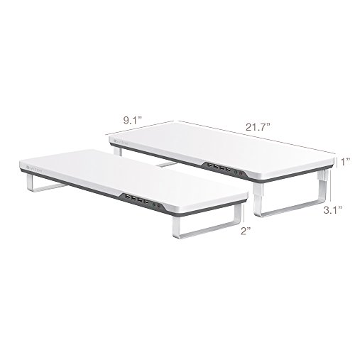 - Feature : Slim, modern design looks great on any desk. / Two preset heights let you adjust the stand to your preference. / Durable stand holds up to 22lbs. - not recommended for 27" iMacs / Space under the stand can be used for additional desk storage. / Four USB 3.0 ports and headphone / microphone ports for easy access to your computer's connections.