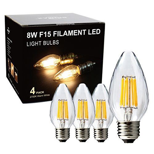 - ★ F15 Candelabra led light bulbs, E26 medium base, Vintage Edison style, light pattern same as incandescent bulbs, 360 degree beam angle, dimmable, using clear crystal glass, plus filament and antique shape, classic and exquisite, fit well into the glass globe fixture.