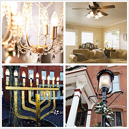 - ★ LED decorative light bulbs - ideal for use in indoor antique decorative fixtures, such as pendant Lights, chandelier lights, ceiling fan, vintage sconces, big menorah (Flame wavy clean glass bulbs, slight prismatic effect ,2700K warm white)
