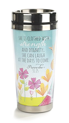 -. Brand : Dicksons -. Color : Multi -. EAN : 0603799544238 -. Feature : Vibrantly colored travel mug is a wonderful gift for a Christian woman who exemplifies the virtues of Proverbs 31 / On front is the Proverbs 31 Woman logo, and on back is Proverbs 31:25: "She is clothed with strength and dignity; she can laugh at the days to come." / Great for Mother's Day or any time / Mug holds about 16 ounces; is stainless steel on inside to keep beverages hot; plastic outside keeps hands cool / Matching plastic lid prevents spills -. Label : Dicksons -. Manufacturer : Dicksons -. MPN : SSMUG-108 -. PartNumber : SSMUG-108 -. ProductGroup : Kitchen -. ProductTypeName : KITCHEN -. Publisher : Dicksons -. Size : 16 oz. -. Studio : Dicksons -. Title : Travel Mug - Proverbs 31 Woman -. UPC : 603799544238