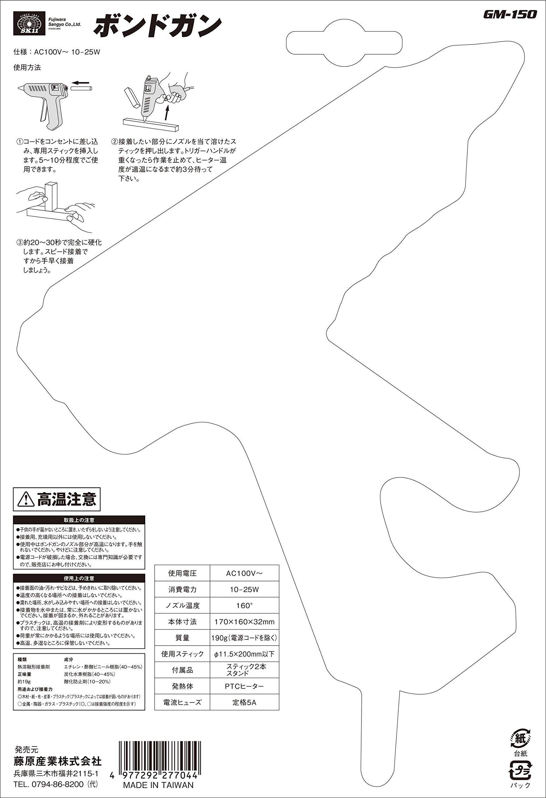 ※ The nozzle part of the bond gun becomes hot during use, please do not touch the hand.