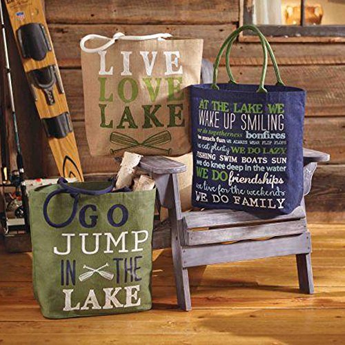 -. Brand : Mud Pie -. Department : womens -. Feature : Jute tote features lake inspired word art with pop color cotton web handles / Laminated wipe-clean interior with interior pocket / Size: 18 x 22 x 8 Inch / Large multi-purpose carry all tote bag / Perfect for overnight trips, shopping, camping, poolside and the lake -. Model : 8613140 -. PackageQuantity : 1 -. ProductGroup : Apparel -. ProductTypeName : LAGE -. Title : Mud Pie Lake House Tote