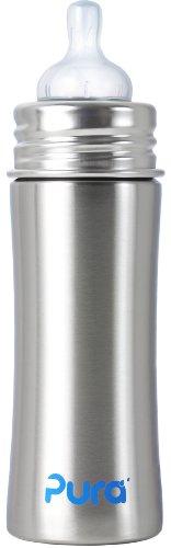 -. Title : Pura Kiki Stainless Infant Bottle Stainless Steel with Natural Vent Nipple, 11 Ounce, 3 Months+
