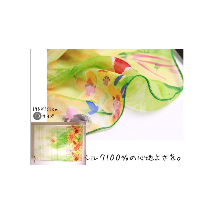 원본상품명: シルク 100% 大判 スカフ ストル 【 フルル グリン 】 花 絹 UV 防寒 シフォン 天然素材 195×135cm [Instyle Japan]