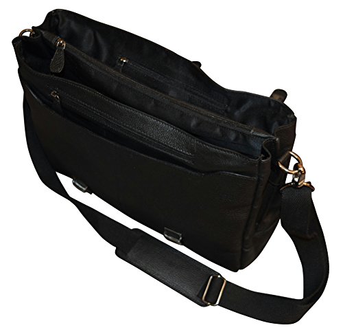 - Feature : Interior double compartment flapover construction made of high quality genuine leather / Back features a full lenght pocket with snap closure / Interior is open to hold files, folders or any other essetials. Center divider has zipper closure / Top handle and removable, adjustable shoulder strap / Flap design with push snap lock closure