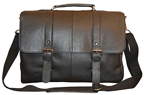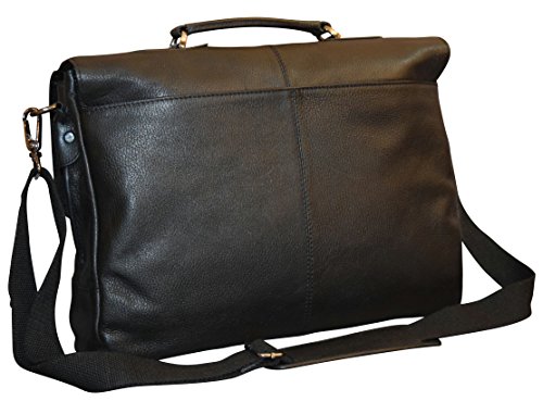 - Title : Men's Genuine Leather Flapover Briefcase With Top Handle - Black