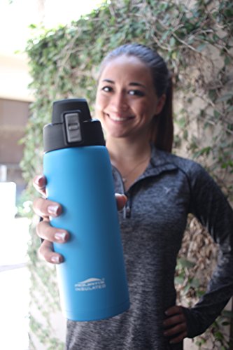 Aquatix (Sea Mist Blue, 21 Ounce) Pure Stainless Steel Double Wall Vacuum Insulated Sports Water Bottle with Convenient Flip Top - Keeps Drinks Cold for 24 Hours, Hot for 6 Hours
