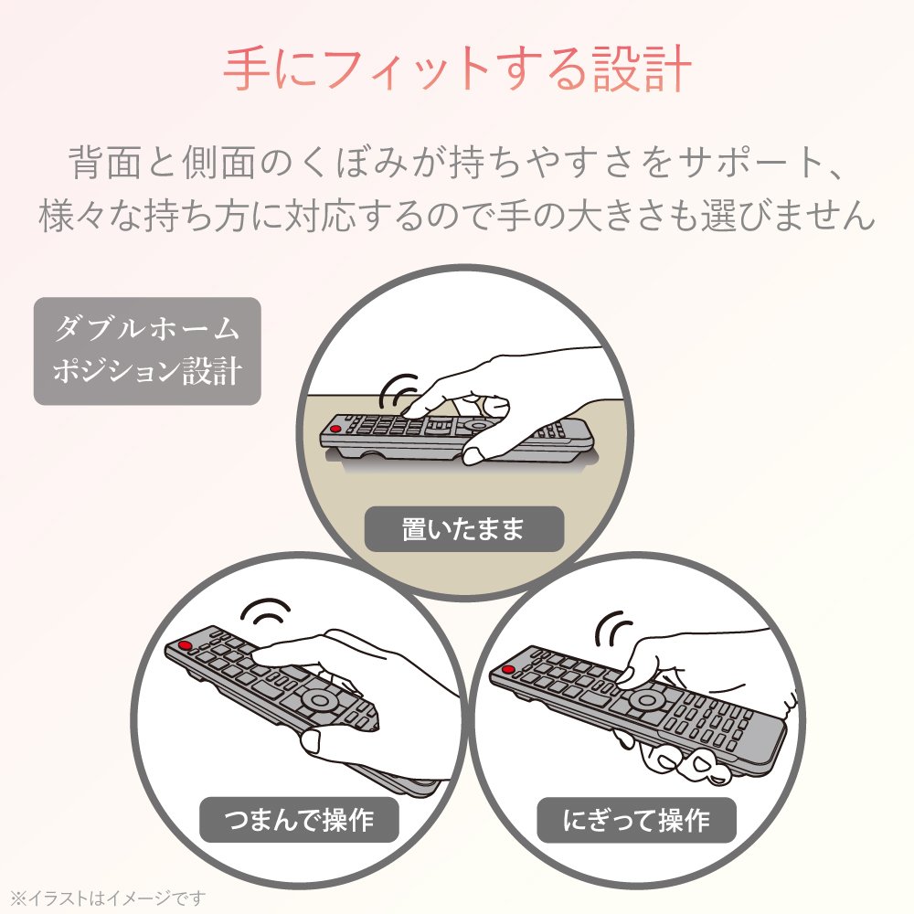■ When you grab and operate the remote control, such as recording viewing operations, the indentation on the back fits the index finger and you can comfortably operate by supporting the remote control.