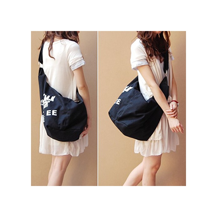 원본상품명: SBJ キャンバス バッグ レディス 大きめ ショルダ かわいい 帆布 肩掛け A4サイズ (ブラック )