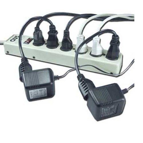 Can be used on the power surge strip to provide space for power adapters and extending the outlet for another 6ft