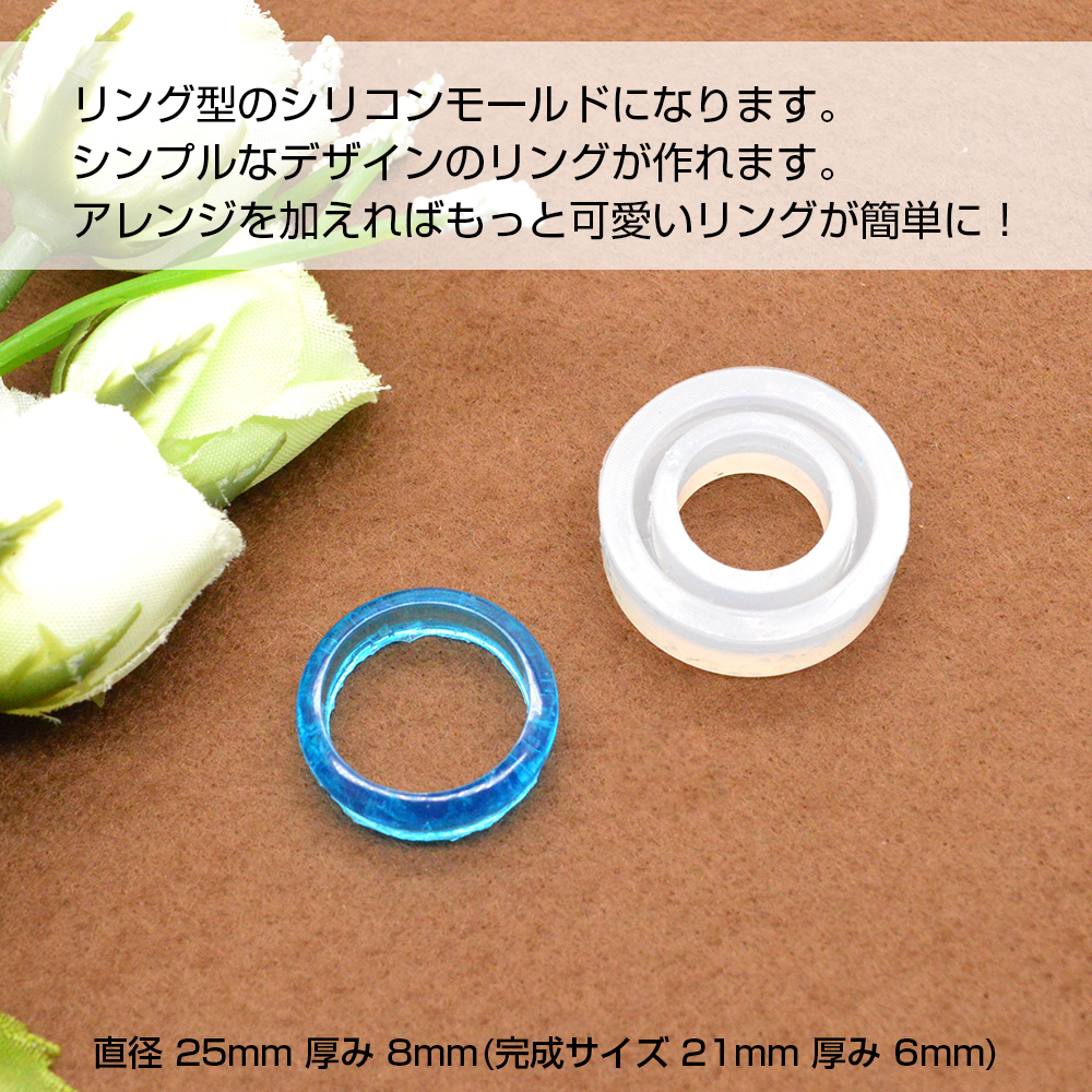 ■商品説明: リング型のシリコンモールドになります。シンプルなデザインのリングが作れます。アレンジを加えればもっと可愛いリングが簡単に!