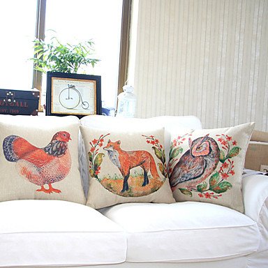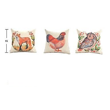 【Bailand】 Set of 3 Lovely Animals (Owl+fox+chickens) Cotton/linen Decorative Pillow Cover