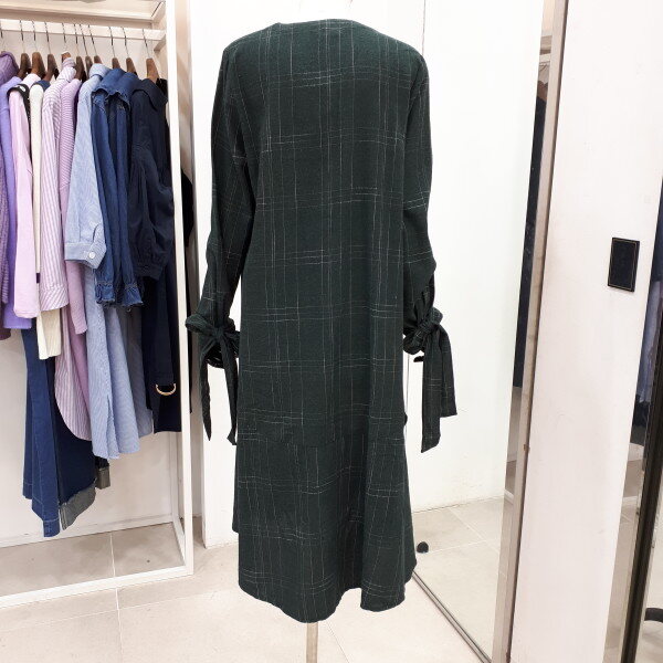 소매에 긴끈이 있어 포인트가 될수 있게 입으실수 있는 원피스예요 뒤총장은 114cm 입니다