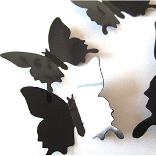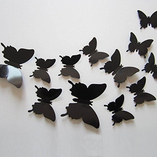 -. Feature : Butterfly Size:Approx. 11cm/ 4.33" (2pcs);Approx. 8cm/ 3.15" (2pcs);Approx. 6.5cm/ 2.56" (8pcs) / Color: Black, Gray, Yellow, Purple Blue, Pink, Light Blue, White, Red;Note: Item color displayed in photos may be showing slightly different on your computer monitor since monitors are not calibrated same. hope understanding. / One set is 12 pcs 3D butterfly stickers mixed packing, perfect design.Can be applied on all smooth surfaces, such as walls, doors, closets, plastic, metal, fridges, laptops, TV, cars and so on. / A perfect gift for any special occasions like Christmas, wedding, birthday.Plesase kindly be noted one butterfly only needs one very small piece of blu-Tack.It comes with Blu-Tack and have 2 Type to Choose!Pin or magnet in the body of the Butterfly ! / Package Include:12 pcs 3D Butterfly Wall Stickers+1x blue-Tack