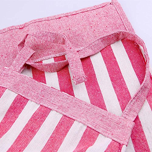 Stripe Classic Kitchen Panifore, Adjustable Neck & Waist Ties, Front Pocket, Apron for Cooking, Baking, BBQ (red)