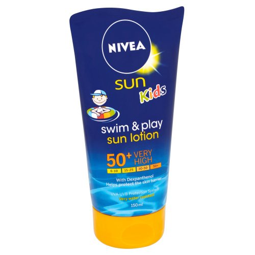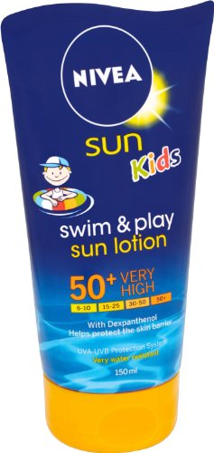 -. Binding : Health and Beauty -. Brand : Nivea -. EAN : 4005808475018 -. Feature : Especially formulated for your little waterbabies / Help to keep your children protected whilst in the water / Light formula with dexpanthenol helps to maintain moisture in the skin barrier whilst protecting immediately against the suns harmful rays / Long lasting water resistant / SPF50+ very high protection -. Label : NIVEA -. Manufacturer : NIVEA -. Model : 85833 -. MPN : 85833 -. PackageQuantity : 1 -. PartNumber : 85833 -. ProductGroup : Beauty -. ProductTypeName : BEAUTY -. Publisher : NIVEA -. Studio : NIVEA -. Title : Nivea Sun Kids Swim & Play Sun Lotion Spf50+ 150 Ml