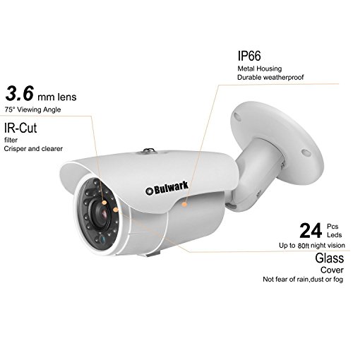 BULWARK 1/3" CMOS 800TVL CCTV Home Surveillance Weatherproof 24 Led 3.6mm Lens Wide Angle Bullet Security Camera with IR Cut-65ft IR Night Vision Distance, Aluminum Housing for 960H/D1/1080N/1080P DVR