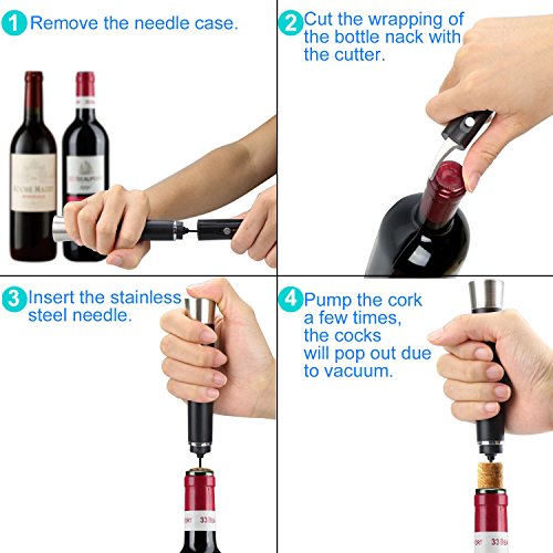 - ✅ Using the principle of vacuum pressure, there is tiny holes simply insert the needle corks, pump a few times and the cork will be out. No need to twist and pull in the process.