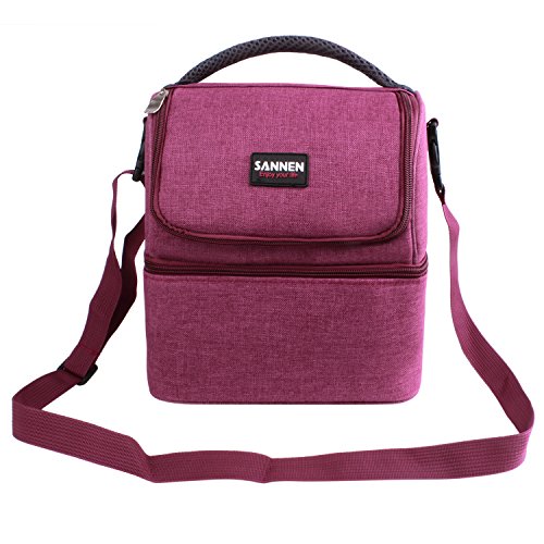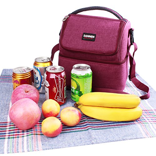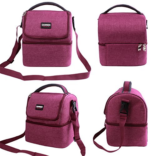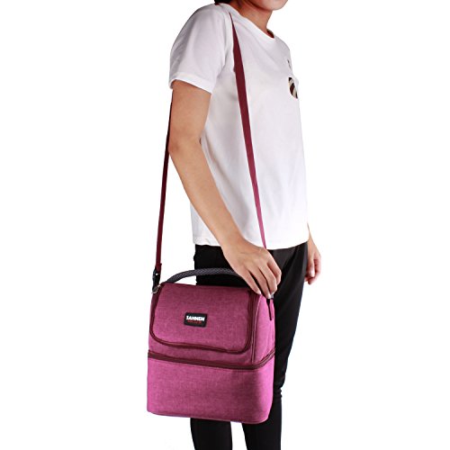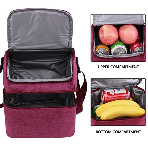 7L Lunch Bags Insulated Lunch Box Large Cooler Tote Bag Double Deck Picnic Bag Reusable Lunch Organizer Lunch Holder with Strap for Men Women Kids (Wind Red)