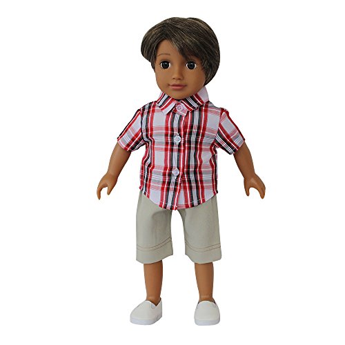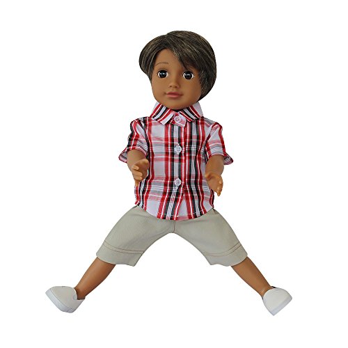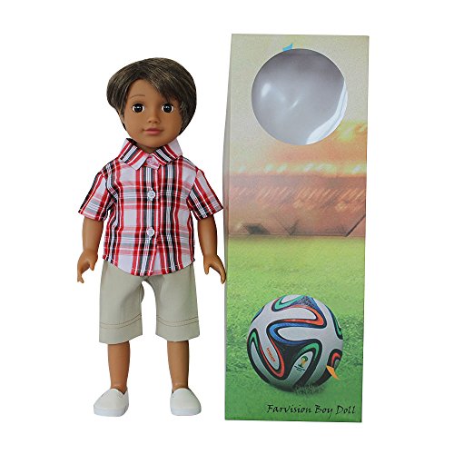 - 18 inch doll and doll outfits set:included 18 inch boy doll and doll plaid shirt,pants and white shoes,Green gift box