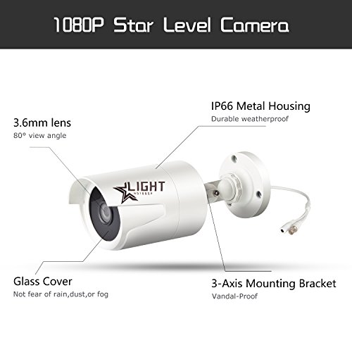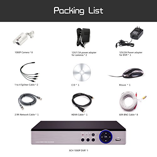 -. Feature : This is new tech 1080P 8 channel DVR CCTV kit with 8PCS 2.0MP weatherproof night vision star light cameras, Support Remote Viewing on PC, Mac, iPhone, iPad, and Android device / Full HD 1080P 1920*1080 2.0 MP resolution, superior to 720P/960H, IP66 weatherproof night vision star light camera / New Starlight Technology - Capture high definition 1080P HD Color video day and night ( Color Night Vision ) / DVR Support analog cameras, IP cameras and AHD cameras. Smart motion detection and email alert / Free APP Xmeye, Instantly access scan QR code on DVR, quick remote setup. Convenient for Live View and Playback on Smartphone, FCC Certified with UL Compliant Power Adapter, 3 Years Warranty and Life Time Tech Support!