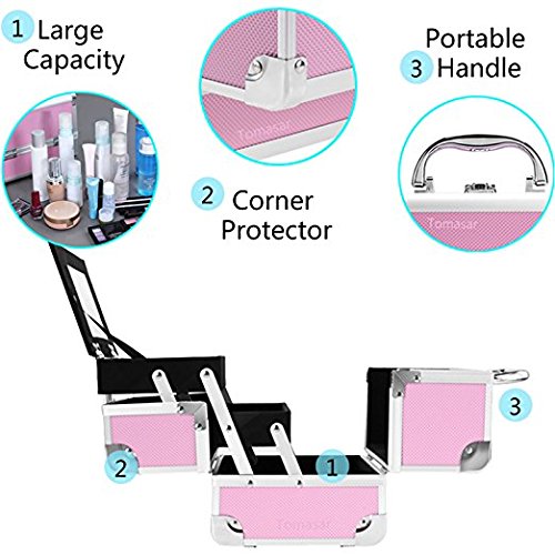 - Materials: This Makeup Train Case is made of aluminum frame, fireproof panel surface and comes with carrying handle, making a high-end cosmetics case