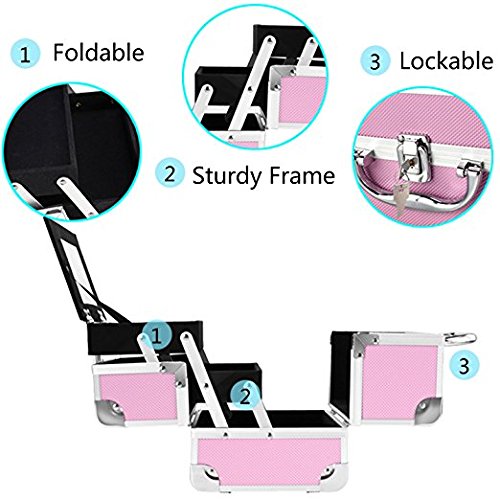 - Large Capacity: The Cosmetic Makeup Train Case has a spacious bottom compartment provides space for your large items, 2 extendable trays allow you to see all your cosmetics at once and give you a Mini Dresser. You can lock iIt with Keys or button it up.