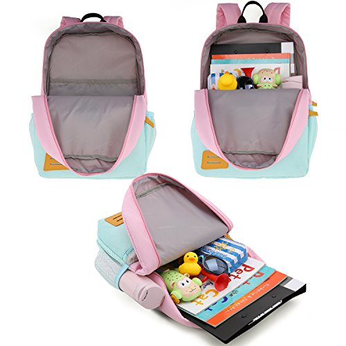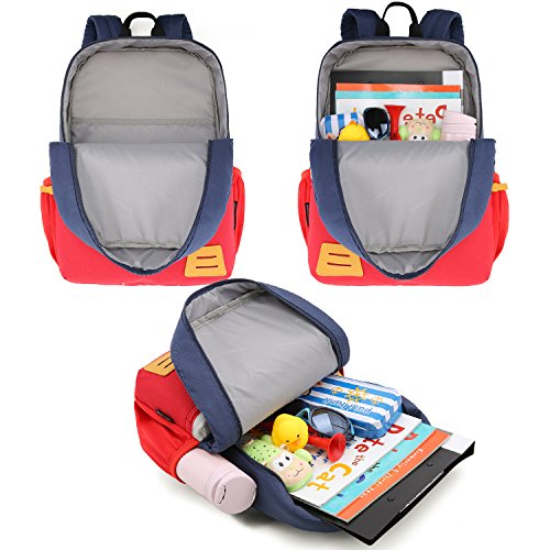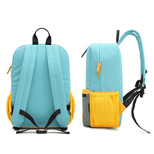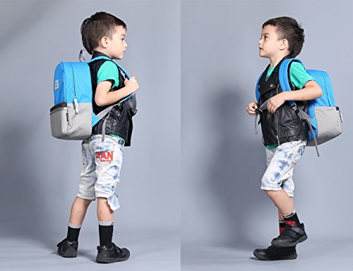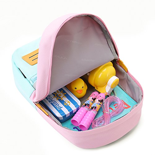 Product Description MOMMORE Contrast Color Design Kids Backpack Daring contrast color design makes you and your children happier. This pack is more suitable for both pre-schooler as 3-6 years old and pupils. Compact shape and size perfect for necessary school supplies and travel outings items(such as lunches, crayons and books) Material: Durable Oxford with Padded Foam Dimensions: 10.8L x 14.5H x 5.3W inch Weight: 290g