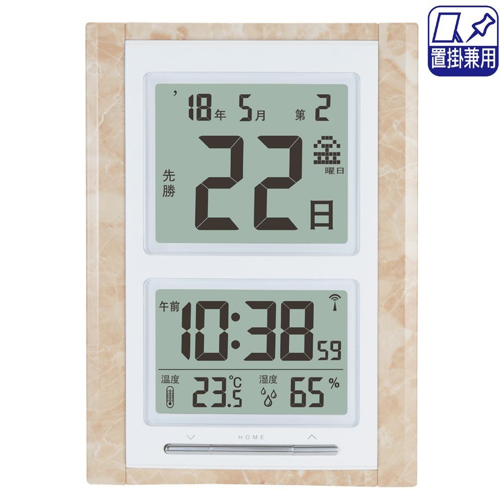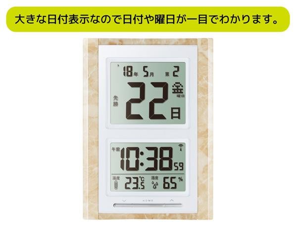 高級感のある大理石調フレームの日めくりカレンダー風電波時計です。