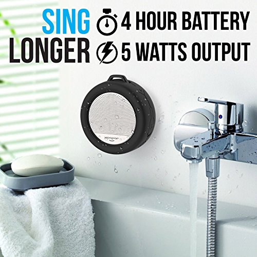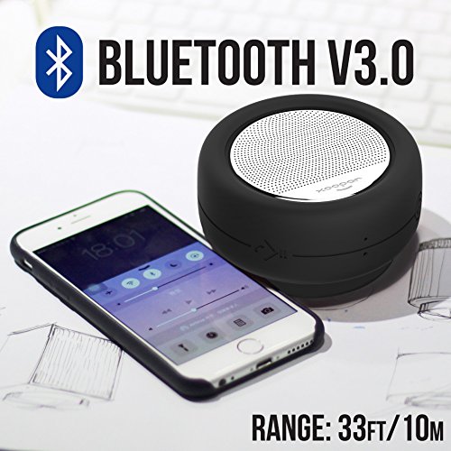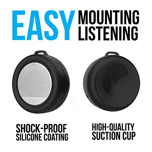 Ultra Portable Bluetooth Shower Speaker with Suction Cup Mount - IP65 Waterproof - Auto Shutoff - Rechargeable Battery