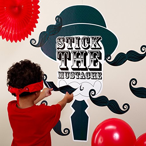I mustache you to have lots of fun! Stick the mustache to the man! Includes (1) vinyl game board (36" x 22") and (10) mustache decals. Simply apply to wall (or most smooth, flat surfaces). Made of heavy-duty vinyl.