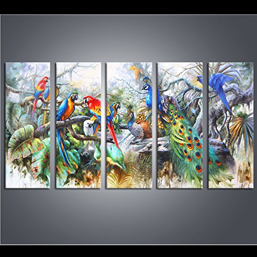 -. Title : JoyArt -Peacock Painting Parrots Picture Canvas P.R.Int on Canvas Wall Art for Home Decorations Artwork Stretched, Ready to Hang, 5pcs/set