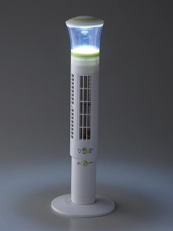 USB電源で使用するタワー型小型扇風機とスタンドライトが一体となりました。乾電池を使用すれば携帯用扇風機、懐中電灯としても使用することが出来ます。 |