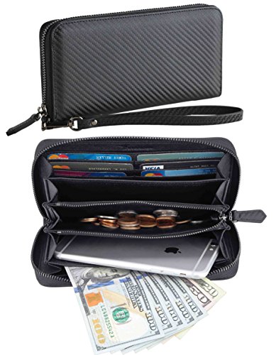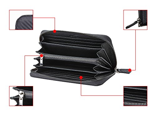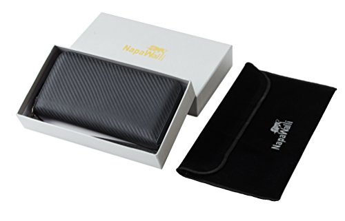 -. Feature : A Luxury Wallet: Made from top grained cowhide leather with carbon fiber texture, this NapaWalli womens clutch has the unparalleled attractiveness when you take a close look and have a touch on its surface. / A Functional Wallet: 2 ticket slots on the side; 12 card slots; 2 large functional slots for mobiles and other bigger size items ( iPhone 7S fits ); 1 zippered pocket for cash and coins; a wriststrap is also included for the convenience of daily use. / A RFID Blocking Wallet: A layer of silver embroidered lining surrounds the entire wallet when the wallet is zipped, providing comprehensive protection to the vital information in your ID card, credit/debit card and driver license. / A Perfect Gift Idea: packed in a nice looking gift box, this wallet makes a great gift idea for her, make it be birthday, anniversary, Christmas or any other occasion when a gift is needed. / A Happy Purchase Guaranteed: if, in any case, you are not happy with this purchase, a hassle free return or exchange service will be available.